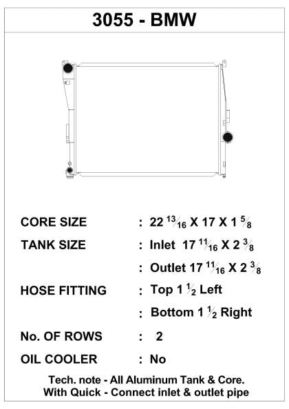 The E46 CSF Aluminum radiator is designed as a direct replacement to the stock system. It uses all of the factory plastic shrouding, hose connections, and mounting points. Although not a concern, and it does not affect performance, the thicker core will tighten tolerances and move some components slightly out of position. Clearance between the expansion tank and accessory belt is particularly tight but contact has not been an issue even on Spec E46 and other track cars. When retaining the stock/factory fan shroud, some small modification and adjustment may be required. All CSF radiators receive design and development in the USA with additional wind tunnel, vibration, thermal cycle, burst pressure, and salt spray testing done at their production facilities in Southeast Asia. During manufacturing, radiators are individually tested for leaks and receive a 30-point inspection prior to shipping. CSF is an OE supplier to several manufacturers as well as providing private-label products for other radiator brands. CSF radiators have a two year warranty.