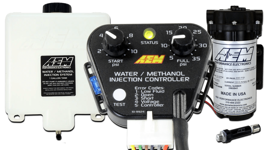 Less fluid used means fewer refills of your WMI tank and less money spent refilling it. This kit is boost dependent for forced induction vehicles up to 35 PSI of boost NOTE: Note: FOR OPTIMUM RESULTS, ALL WATER/METHANOL INJECTION SYSTEMS AND GAUGES SHOULD BE RUN WITH AN AEM INLINE FILTER (AEM PART #30-3003)